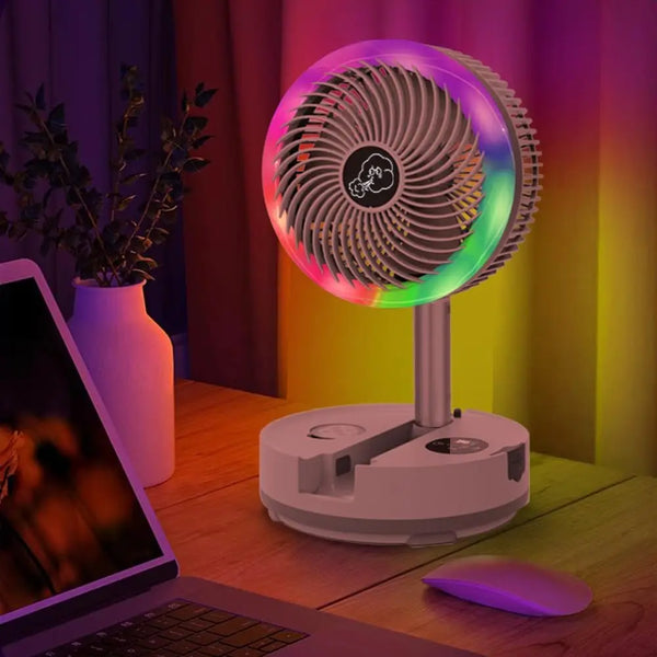 Compact foldable body, long-lasting battery, and remote control deliver quiet cooling and reliable light wherever you need comfort and focus.